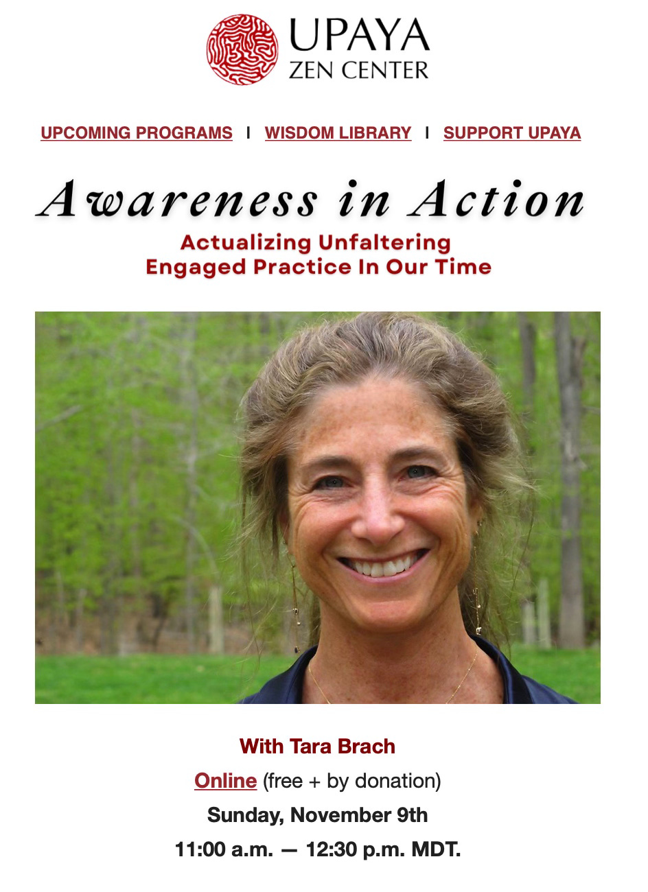 THIS WEEKEND: Join Tara Brach “Disarming the Heart—Practices for Bridging Divides” (FREE, Online) at Upaya Zen Center
